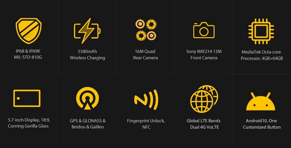 - Максимальный класс защиты IP68/IP69K и американский военный сертификат MIL-STD-810G;