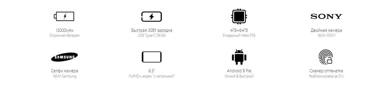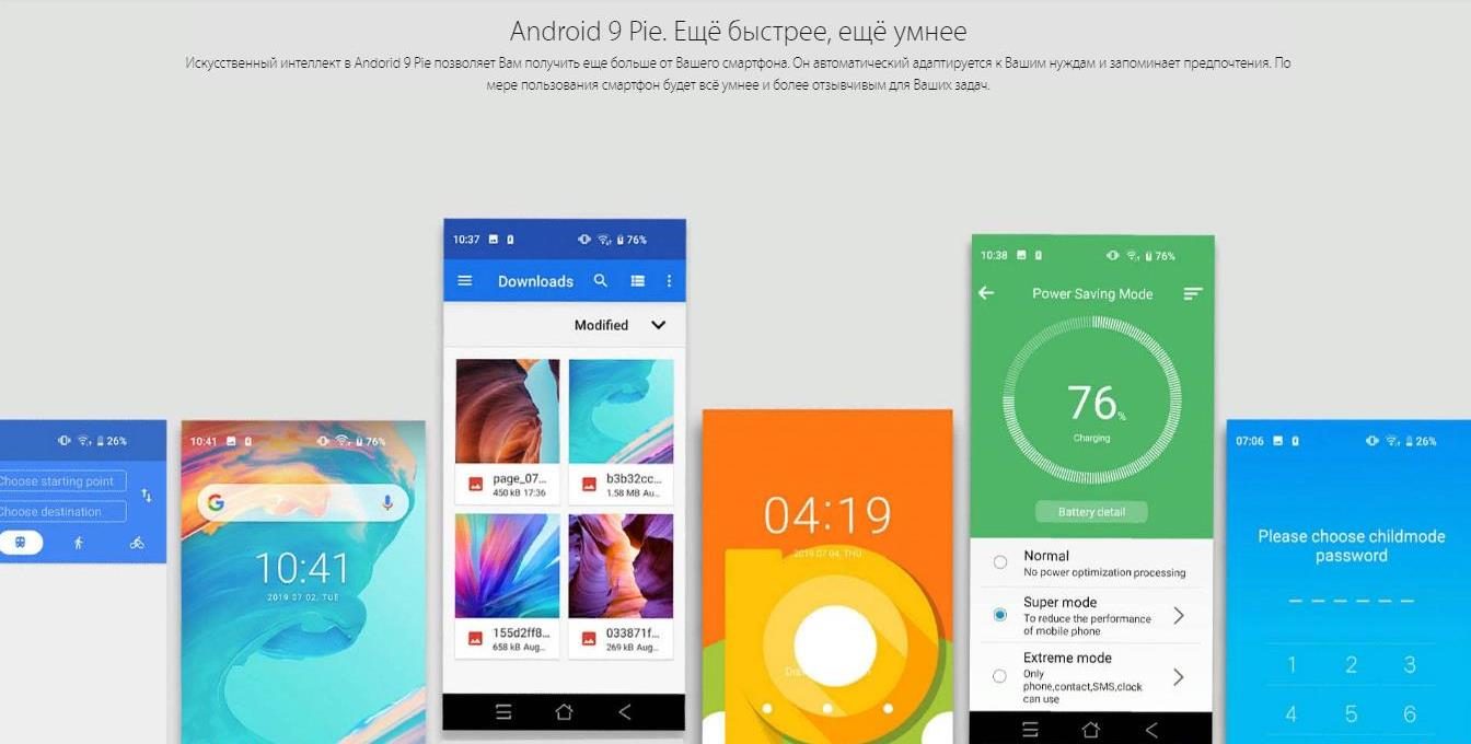 - Передовая операционная система Android 9.0 Pie.