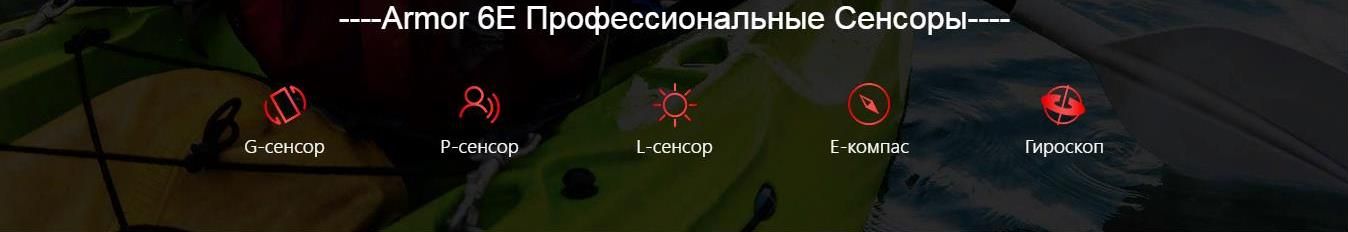 - По заверениям производителя, аккумулятора ёмкостью 5000 мАч в Armor 6E хватает на 25 часов разговоров по телефону и 34 часа прослушивания музыки. Кроме того, предусмотрена быстрая зарядка на 18 Вт через разъём Type-C и беспроводная по стандарту Qi мощностью 10 Вт.