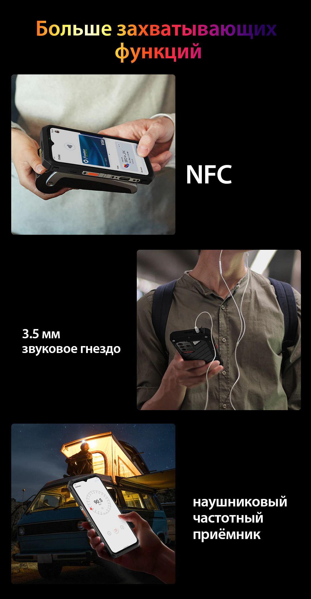 | Дополнительно | Мощный аккумулятор |